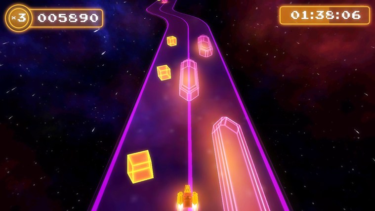 Spectra (2015) is a Racing game, developed by Gateway Interactive and published by Mastertronic, which was released in 2015. TRAILER: Spectra is a twitch racing game. Blast your nimble ship down intricate ribbons of light in time to the dynamic beats and original soundtrack by chiptune artist legend Chipzel. Last year, indie developer Gateway Interactive launched a chiptune-driven “racing” game calledSpectra on Windows 8 and Windows Phone. The phone version got pulled from the Store for some reason, but the Windows 8 game remains fairly popular. Back when those games were released, the developer promised an Xbox One version would come as well. This month, Spectra finally arrived on Microsoft’s premiere console. Spectra: 8bit Racing (ahem, that should be spelled 8-bit) is a single-player racing game that plays a bit like an endless runner; players don’t control their speed or compete against other racers. Racers will zoom across space on procedurally generated tracks while chiptune songs from British artist Chipzel blast away. And at $7.50, it won’t break Xbox One gamers’ wallets. Are attractive neon visuals, a catchy soundtrack, and low price reason enough to grab Spectra? Read our detailed review with video to find out! Race in space Spectra started its life as a mobile game, and (as far as I can tell) very little has changed in the transition to Xbox One. The game has no story or cinematics to speak of. You just choose Continue (even before you’ve played the game once the menu reads “Continue”) and start on your journey through Spectra’s 10 tracks. You play as a red and orange rocket-powered GameBoy, in fitting with the game’s chiptune (a retro style of music) theme. The “Rocket Boy” automatically zooms forward at all times. You just steer it left and right using the stick, d-pad, or triggers. These controls make sense for a game played on phones and tablets, but they come up short against console standards. I really, really want accelerate and brake buttons! As you race across the track, you’ll collect yellow cubes for points. Other ways to score points include catching air and “Nice” bonuses. The game awards Nice bonuses for grazing barriers without actually crashing into them. The bonus can often be frustratingly tough to get intentionally, but you’re bound to collect them by accident throughout the course of a race. The single best way to rack up points is by passing over boost arrows. These temporarily increase your speed while also initiating a score multiplier. Boost arrow multipliers stack, so passing over several in a row will really pile on the points. Spectra even offers an Achievement for reaching a 15x multiplier from boost arrows (I’ve only scored 14x). The catch with score bonuses of any type is the game doesn’t immediately add points to your score. Any points you get from cubes and other bonuses will reside in a holding area for several seconds. If you don’t hit any obstacles or pick anything up for a little while, they get “banked” and added to your score. Strike anything (as happens very often due to the lack of speed control) and your non-banked points get lost forever. The score banking mechanic creates a risk-reward scenario to grabbing cubes and especially boost arrows. You’re never very far from bumping into something, so it often makes sense to avoid collecting more cubes in order to keep your points. Boost arrows make it even harder to avoid collisions, but you need them to get a high score. Unforgiving About those collisions… Spectra only has one kind of object to bump into (other than the very scarce walls): barriers. These barriers appear all over the place, often requiring players to weave back and forth to avoid them. Hitting a barrier bounces your Rocket Boy away. It might even bounce it right off the track, in which case you fail the race and have to start over from the beginning. See, Spectra’s tracks have virtually no walls. Make a wrong turn or hit an unlucky barrier and you’ll fall off into space. Other racing games typically have walls or grassy areas that slow the player down when he or she goes off course. Futuristic racers might have areas in which players can fall entirely off-track, but this usually results in a time penalty rather than complete failure. Here, you never have any control of your speed and you’re always one wrong tap or bump away from dying. Spectra’s not impossibly hard on the default difficulty, but you’re still bound to wipe out and lose more often than in other racers. I can’t tell you how many times I’ve failed with 90+ percent of the track completed. That gets really frustrating. You can also unlock Hardcore versions of each track, just in case you really like falling off the track. developer:Gateway Interactive publisher:Gateway Interactive date of release:10.july 2015. Post navigation Pulut Adventure LIFE is STRANGE episode 3 review